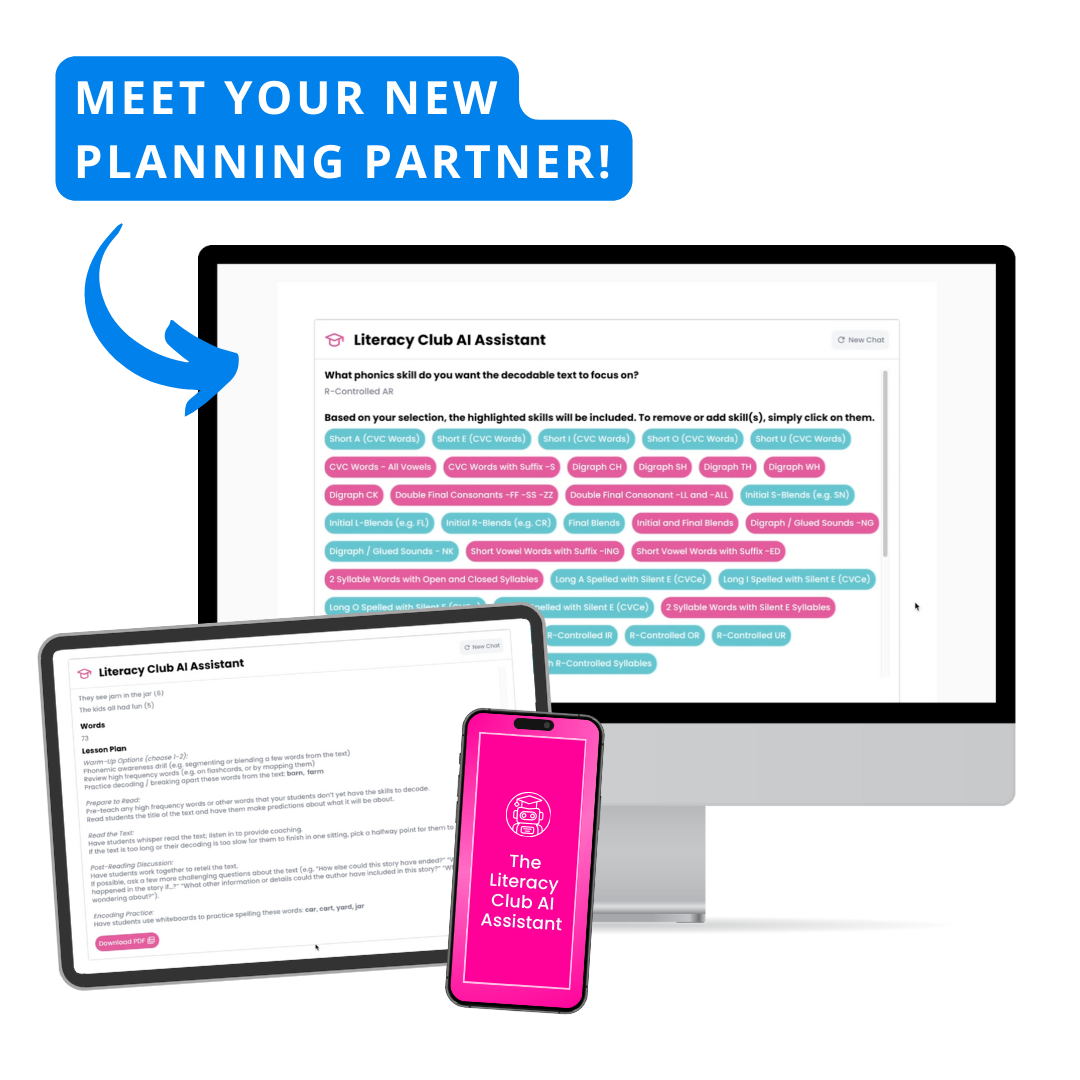 "Our school used 95% as our core phonics, and we also do daily practice with Heggerty. Using the Literacy Club materials reinforced what I was teaching at each student's learning pace. My class showed one of the biggest jumps in their reading foundations this year. I believe using the Literacy Club materials for my small groups and practice centers made the extra jump possible."